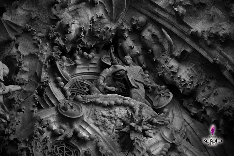 生誕の門に飾られている『15体の天使の像』のうち、東洋にも天使が居るとの外尾氏の考えから2体の天使は東洋人の顔に彫刻されています。