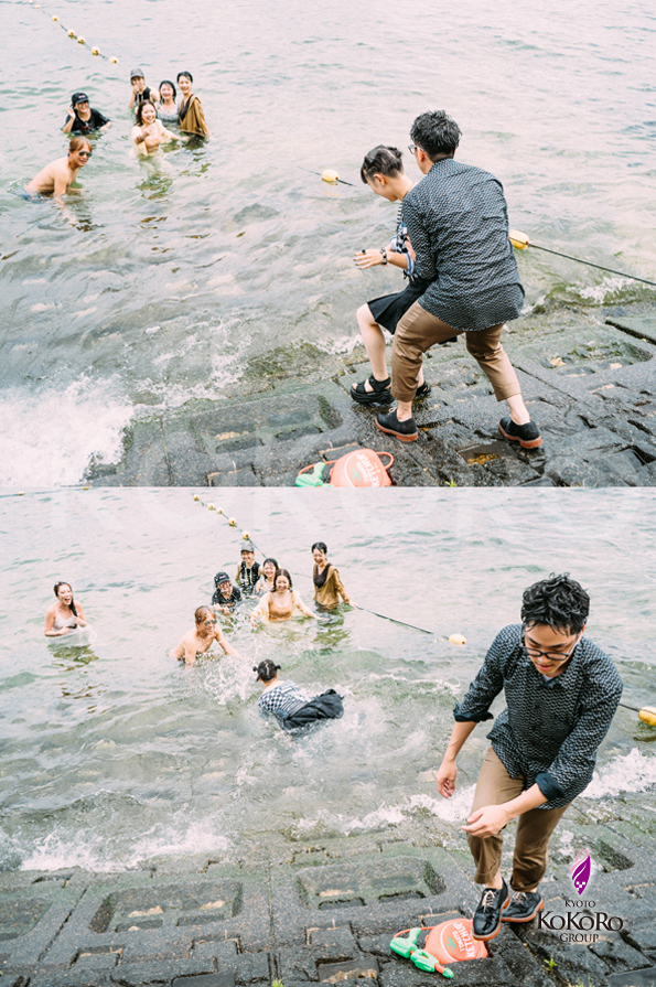 そして琵琶湖に入らない人たちを次々と琵琶湖に落とされていきました(笑)