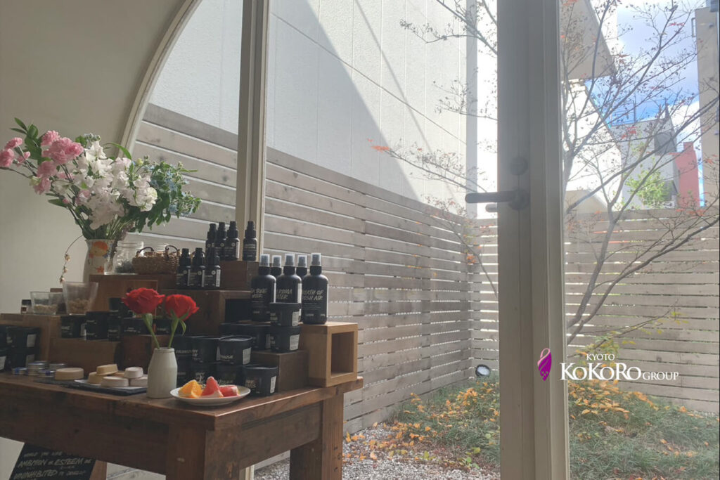 LUSHの第一号店はイギリスにあるらしく、イギリスのおばあちゃんのお庭をイメージした中庭だそうです♡