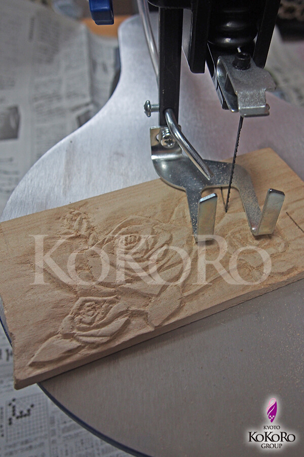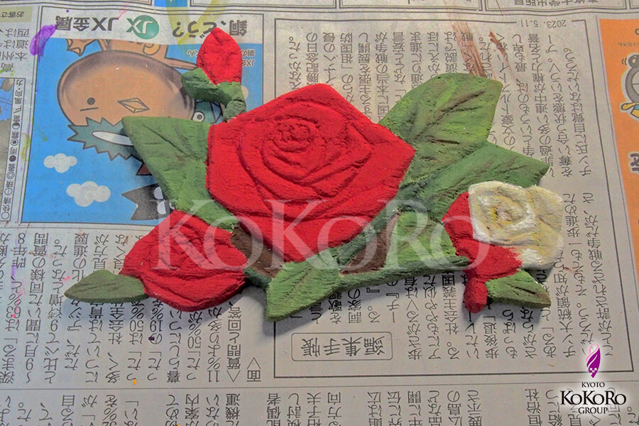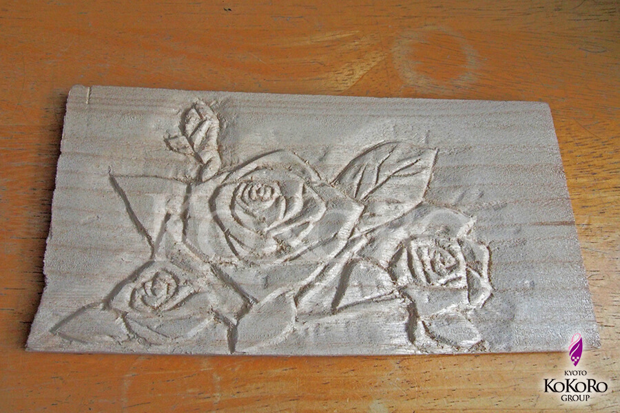 同じく額の方にも薔薇を彫り、色を塗っておきます。