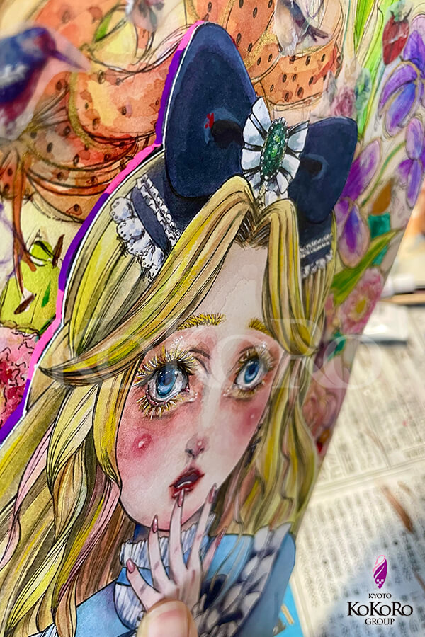 ベニヤ板にアリスを貼り付けているので、平面の作品よりもちょっとだけ存在感があります⭐️