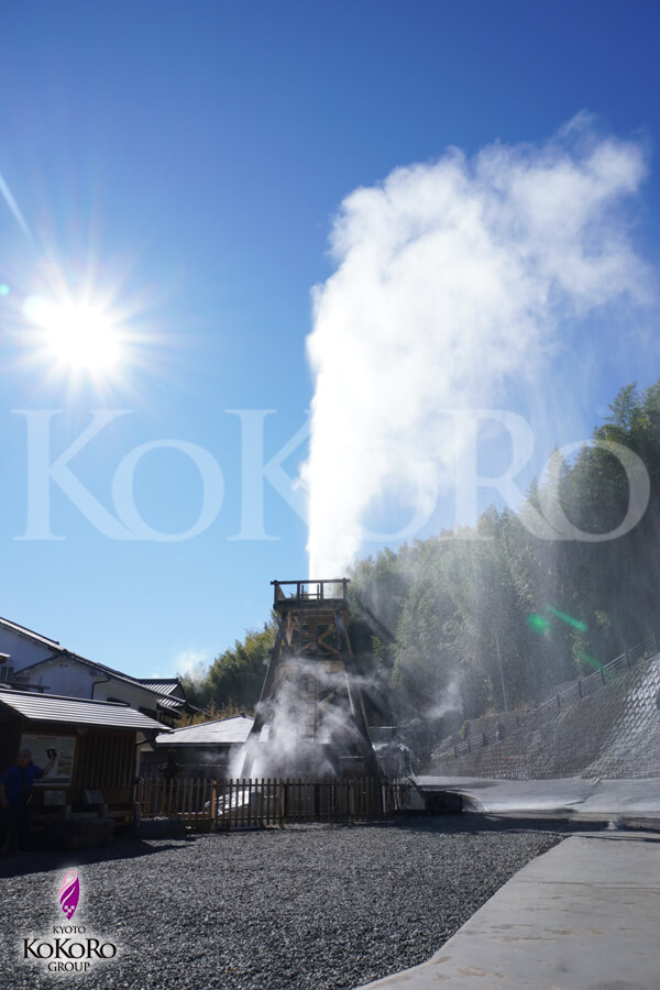 毎分600リットル100度の温泉が高さ30mまで噴き上がる自噴水とのことです。
