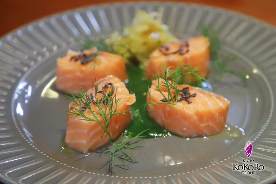生でもなく焼きでもないサーモンの新たな境地が現れるのです。