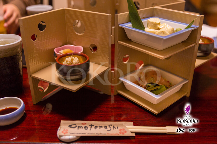 京都の名物湯葉やおから、ゴマ豆腐、サラダなどの美味しそうなお料理がたくさんでてきました(*´▽`*)