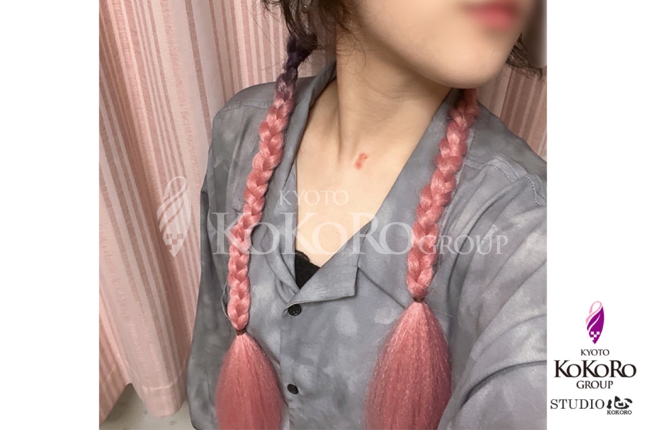 ピンクの毛束をグラデになるように着色してみましたヽ(。・ω・。)ノ