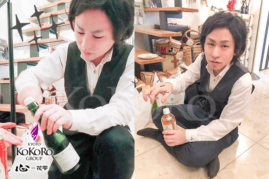 そしてコンビニで買ってきたスパークリングワインを空けてくれたバーテンダー(笑)の多田さんにハプニングが起こりました。