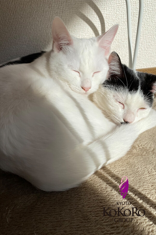 写真のようにいつも2匹寄り添って寝るんですよね💗
