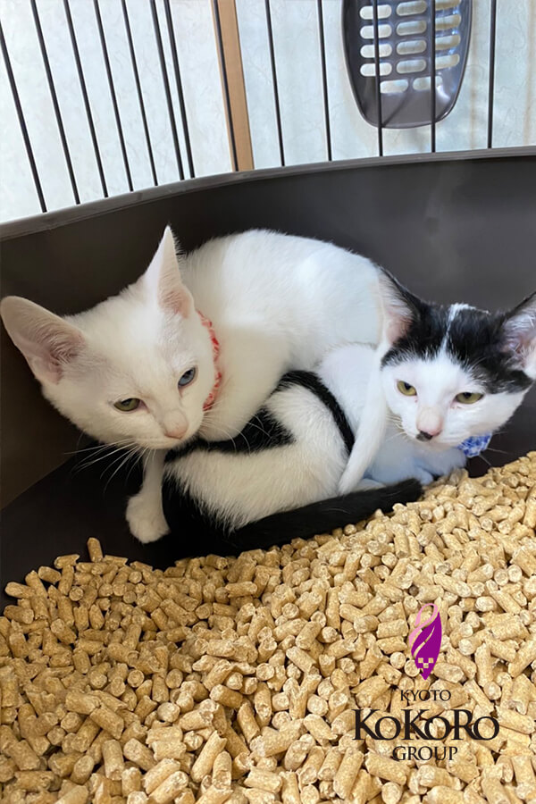4兄妹のうち真ん中の2匹は1匹ずつでの引き取りOKでしたが、しらことくろこは仲良しなので2匹一緒に引き取って欲しいとのことでした。