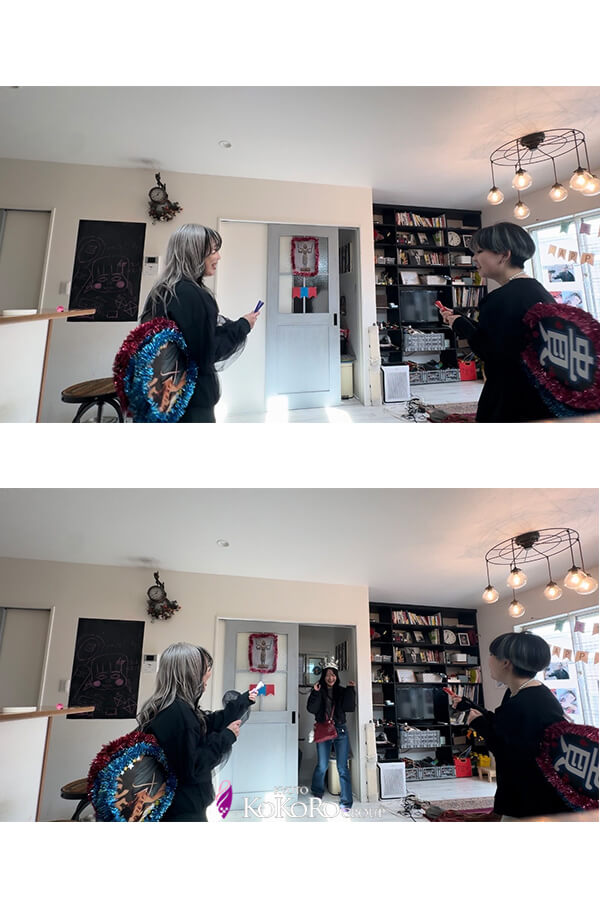 まずは、清水さんの登場を私と後藤さんとでスタンバイして、清水さんの登場と共にクラッカーを鳴らす直前です♡