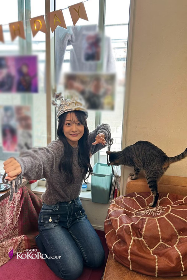 香山さんが練習中の間、香山さんの愛猫アーニャちゃんが机の上にいたので、場所を移動してもらっています(=゚ω゚)ノ