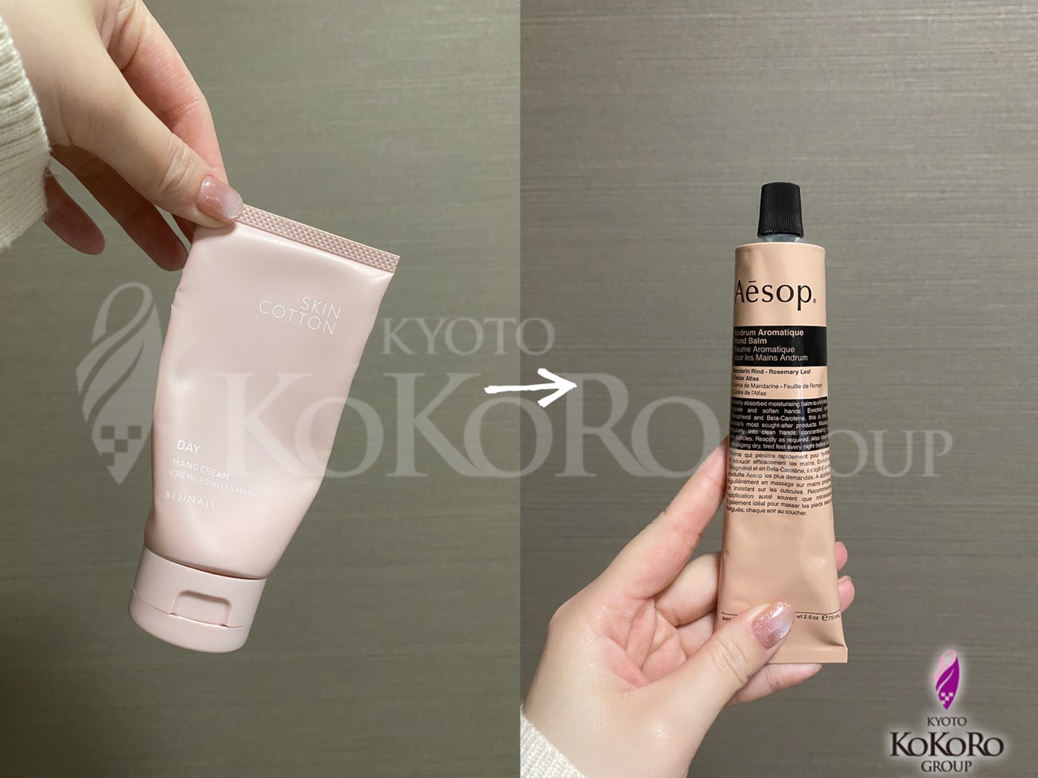 しばらくスキンコットンのピンクのハンドクリームを愛用していましたが、なんとなくイソップのハンドバームに戻しました。