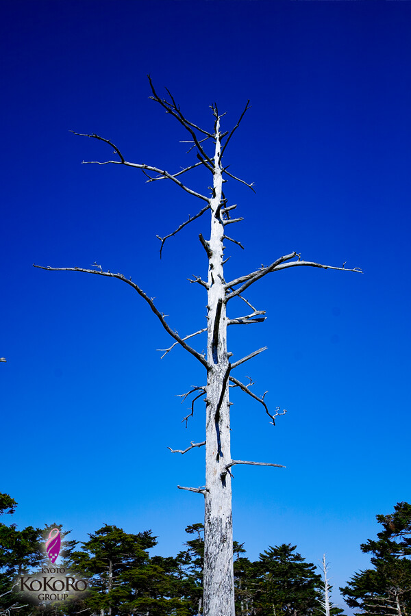この一帯はシカの食害に遭い、立ち枯れの木が多く見られます。