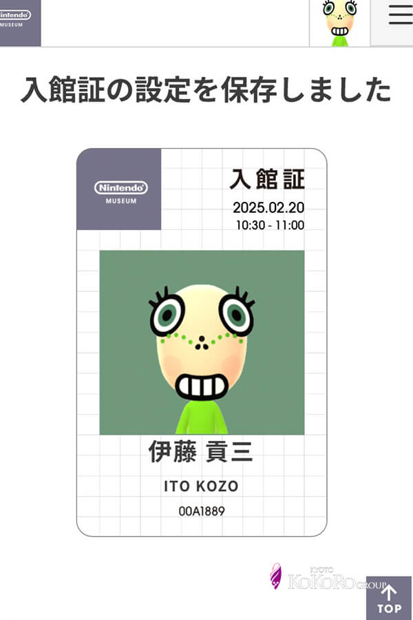 入館証には、Nintendo Switch等で使用している自分のアバターの顔写真を使用できます。