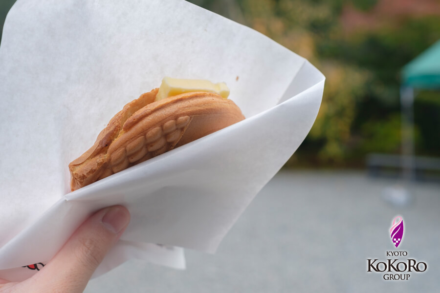 そして見た目は上部に切り目を入れて、そこに北海道日高乳業のバターを挟んだたい焼きとなっております。