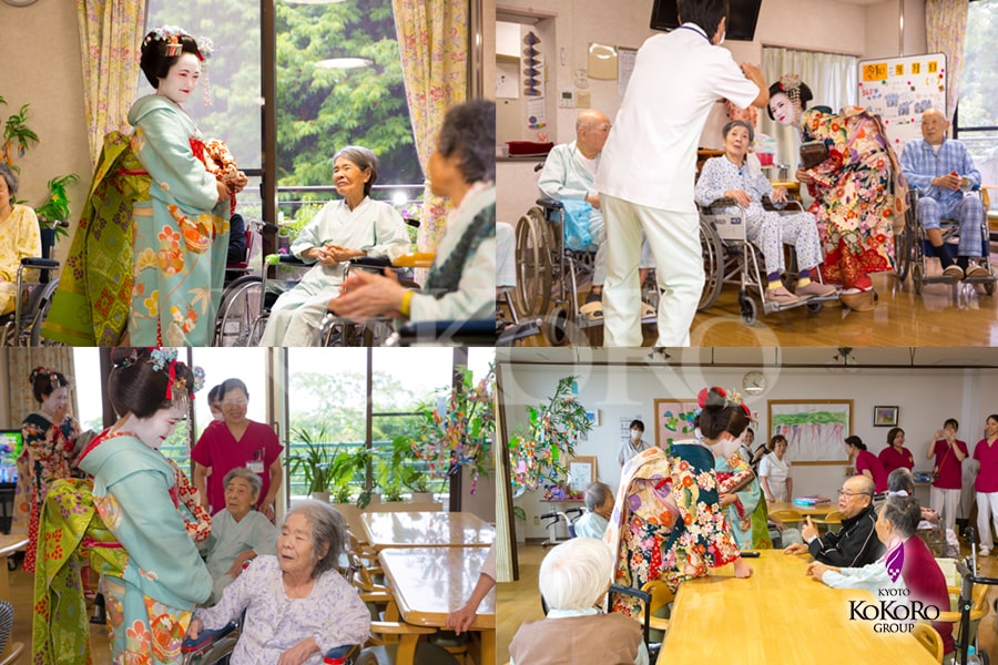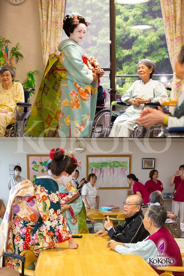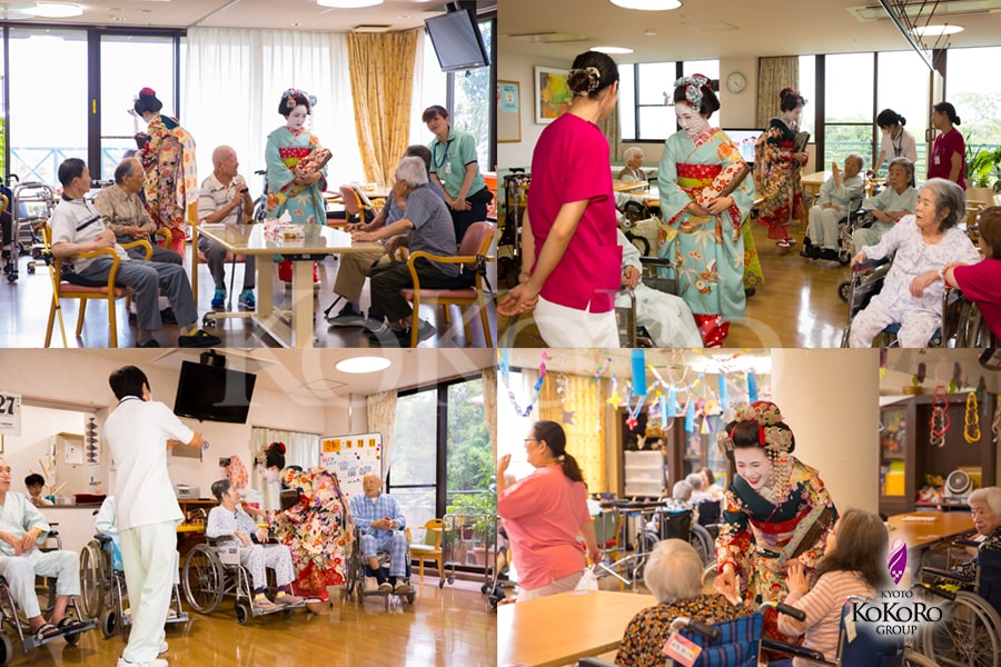現場で働く職員さんに無償で舞妓姿に変身して頂き、施設利用者や一緒に働く方々と触れ合って頂くというものです。