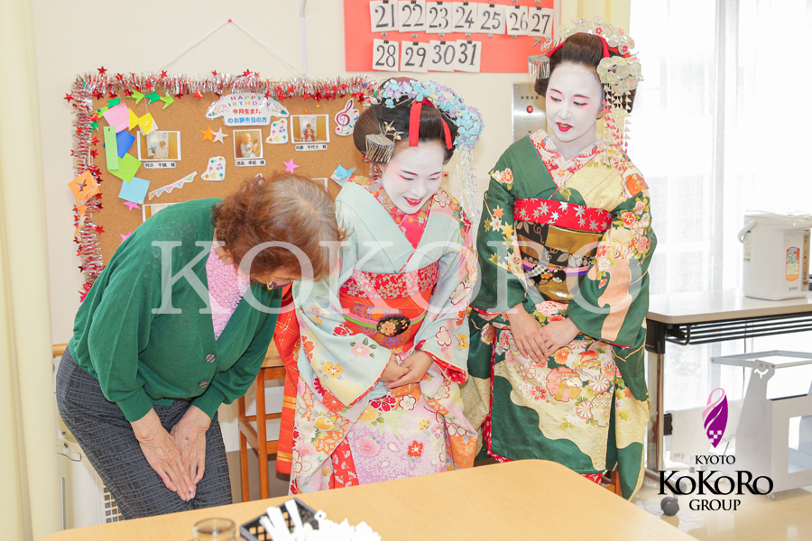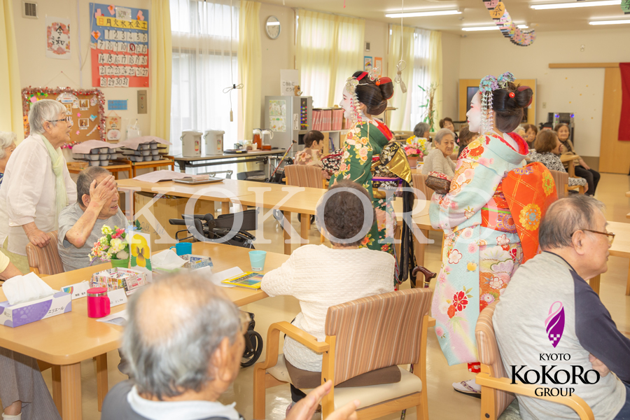私が入社する前から京都ココログループは、老人ホームやデイサービスなどの施設の職員さんに、無償で舞妓姿に変身して頂き、利用者の方に喜んで頂くというボランティアを行っていました♪